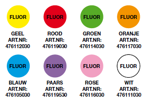 Kleuren: Geel, Rood, Groen, Oranje, Blauw, Paars, Wit